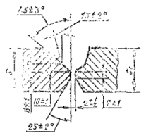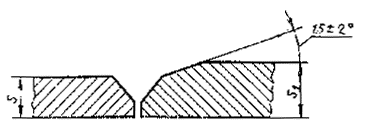 16. При подготовке кромок с применением ручного инструмента, предельныеотклонения утла скоса кромок могут быть увеличены до ±5°. При этомсоответственно может быть изменена ширина шва, е, е1.