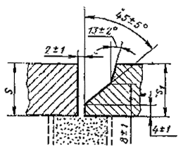 | Стыковое | С двумя несимметричными скосами кромок | Двусторонний |