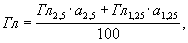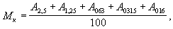 где a2,5, a1,25,ai - частные остатки насоответствующих ситах;