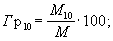 где М10 - остатокна сите с круглыми отверстиями диаметром 10 мм, г;