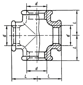 | Название рус.: | Соединительные части из ковкого чугуна с цилиндрической резьбой для трубопроводов. Кресты прямые. Основные размеры |