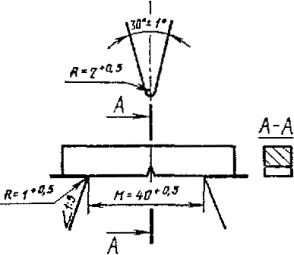 1.5. Максимальный остаточныйпрогиб, образовавшийся при нанесении на образцах концентратора вида Т,не должен превышать: 0,25 мм - для образцов длиной 55 мм.