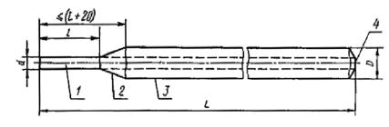 1 - стержень; 2 - участокперехода, 3 - покрытие; 4 - контактный торец без покрытия