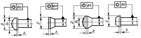 высота цилиндрическогопояска b и недопрессовка на вершине головокв виде площадок D1 (черт. 2) - согласно табл.4