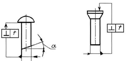 допуск соосности оси головкиотносительно оси стержня (черт. 2) -согласно табл. 5.