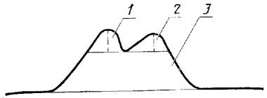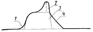 При проведении анализа собратной продувкой колонки суммарная площадь углеводородов С5+вышеможет фиксироваться на хроматограмме в виде неполностью разделенных пиков. Вэтом случае общая площадь, соответствующая содержанию углеводородов С5+выше,разбивается на ряд правильных геометрических фигур, площадь которых вычисляетсяраздельно, а затем суммируется (черт. 8, 9).