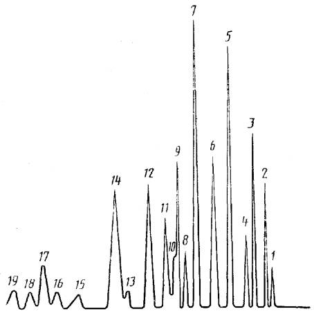 Величину А вычисляюткак отношение расстояний l1 и l0 измеренных по хроматограмме(черт. 1),в миллиметрах