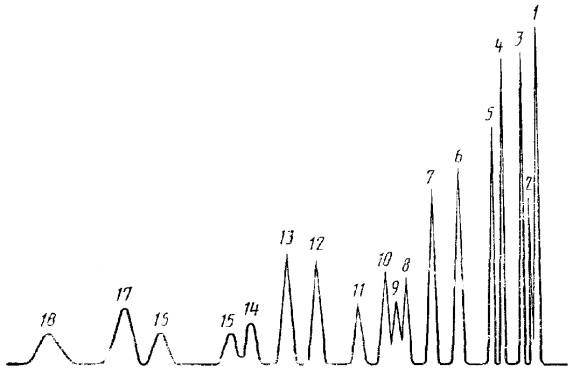 Относительные объемы удерживания и порядок выхода углеводородов наколонке с А12О3,модифицированной вазелиновым маслом
