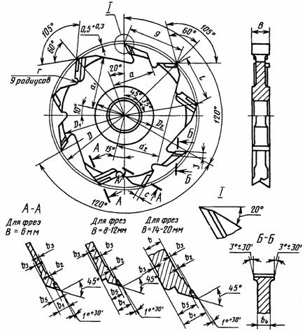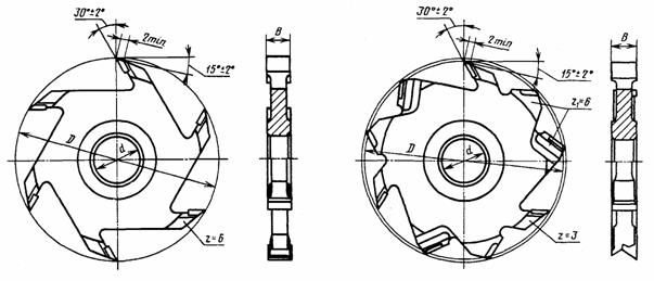 1 - с пластинами из твердого сплава для фрезерования пазов вдревесных материалах и клееной древесине;
