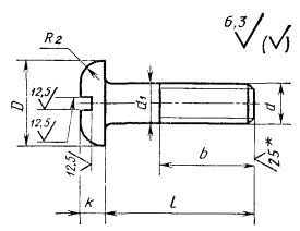 5. Диаметр гладкой части d1 должен быть равен наружномудиаметру резьбы или равен диаметру стержня под накатывание метрической резьбыпо ГОСТ 19256-73