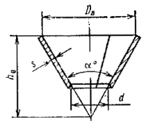 - поверхность конического днища при наличии в нем отверстиядиаметром d.