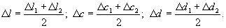 Средние величины перемещений впродольном (∆l) ив поперечных (∆c и∆d) направлениях вычисляютс точностью до 0,5·10-6 м по формулам: