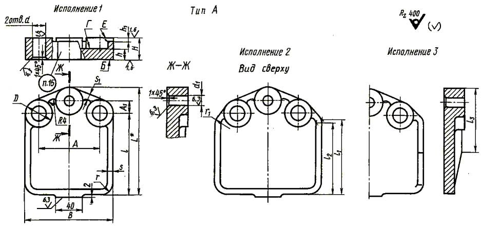 | ПЛИТЫ К СКАЛЬЧАТЫМ КОНСОЛЬНЫМ КОНДУКТОРАМ Конструкция Plates for knee rack-and-pinion-operated jigs. Design | ГОСТ |