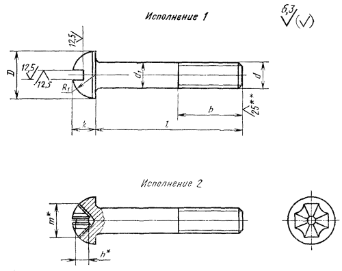 6. Шлицы прямые - по ГОСТ24669-81 , крестообразные - по ГОСТ 10753 -85.