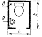 3 - ванна; 4 - умывальник; 5 - унитаз; 6 - трап; 7 - душевойподдон; 8 - канализационный стояк; 9 - рукомойник.