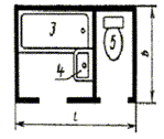 5СК - совмещенный санитарный узел (ванна,умывальник, унитаз и трап) с входом в передней стене;