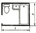 6СК - совмещенный санитарный узел (душевой поддон,умывальник, унитаз и трап) с входом в передней стене;