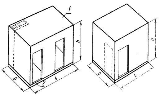 Примечание. Справочная масса определена длякабин, имеющих стены толщиной 50 мм, плиты потолка - толщину 40 мм, плиты днища- толщину 60 мм и плотность железобетона 2500 кг/куб.м3, без учетамассы конструкции пола , облицовочных материалов стен и оборудования.