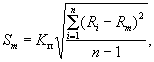 3.3. При контроле по образцам среднее квадратическое отклонение прочности бетона в партии (Sm), МПа, при числе единичных значений прочности бетона в партии п больше шести вычисляют по формуле