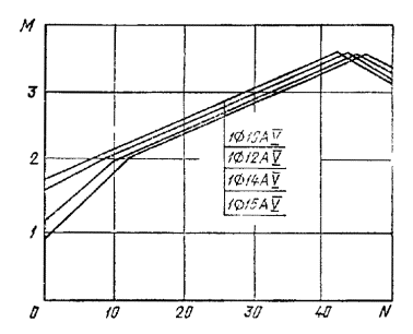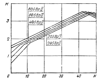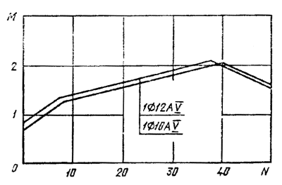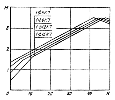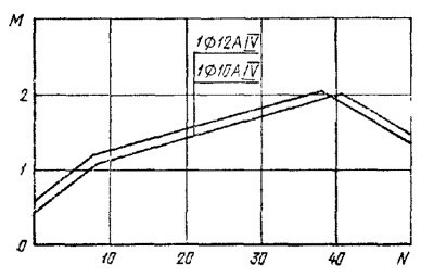 1.1. Графикидля проверки свай, приведенных в настоящем стандарте, на прочность наобразование трещин при внецентренном сжатии от эксплуатационных нагрузок М, N приведены на черт 1-8настоящего приложения.