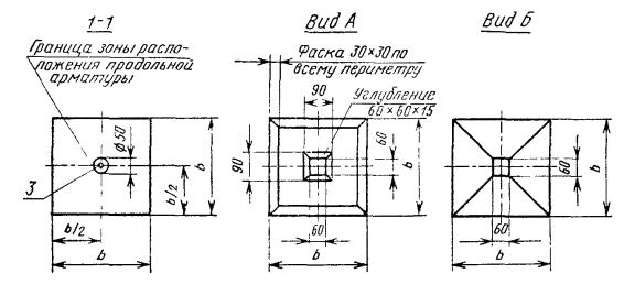 1 - подъемные петли; 2 - штырь для фиксации места строповки; 3 - продольная арматура.