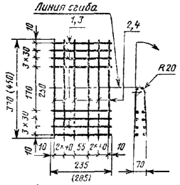 4. Чертежи арматурныхизделий, ведомость стержней на каждый элемент арматурных изделий и выборкастали приведены в табл. 3 и 4настоящего приложения.