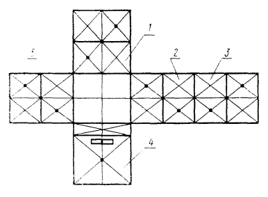 1 -задняя стенка; 2 - правая стенка; 3 - пол; 4 - передняя стенка; 5 - леваястенка.