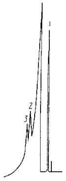 2.7.4.3.Последовательность выхода компонентов: сумма углеводородов С1 - С5, метанол, бензол. Образец хроматограммыпробы н-бутана приведен на черт. 5. Предел измерения электрометра при записисуммы углеводородов 50× 10-8 а, при записи метанола 20×10-12 а, Хм = 0,0020 % мас.