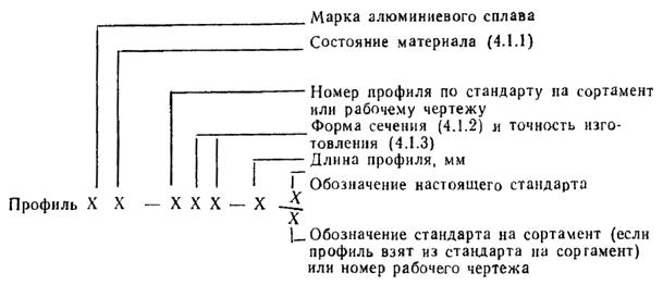 4.2.11 Условное обозначение маркипрофиля следует принимать по схеме.