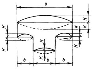 4.2.7 Поперечная кривизна К(рисунки 13-16) профилей в процентах отширины b не должны быть более значений, указанных в таблице 5.