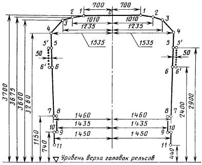 Порядок применения указанных габаритов на эксплуатируемых линиях метрополитенов устанавливается Министерством путей сообщения.