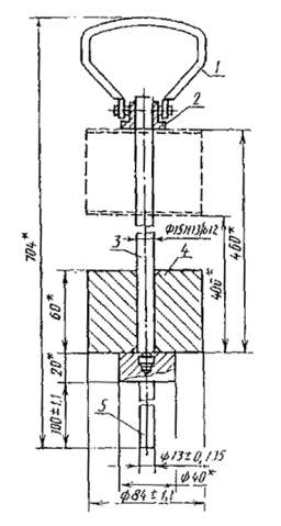 1 - ручка, 2 - втулка в сборе; 3 -шток; 4 - груз; 5 - наконечник.