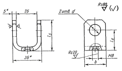 5. Конструкция и основные размеры хомута и хомута с хвостовиком должнысоответствовать указанным на черт. 4 и в табл. 4.
