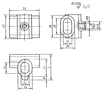4. Конструкция и основные размеры ползунка и скобы должнысоответствовать указанным на черт. 3 и в табл. 3.