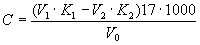 Концентрацию озона С в мг/м3 вычисляют поформуле