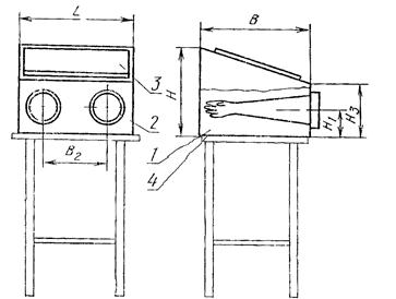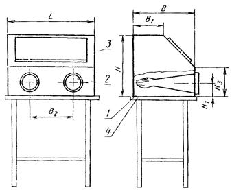 1 - корпус; 2 - перчатки; 3 - окно; 4 - столешница.