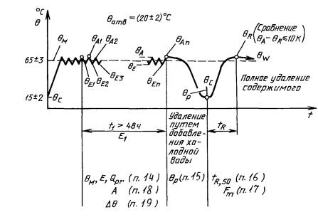 определяют время нагрева tR от включения до первого срабатываниятерморегулятора, если температура воды после повторного нагревания QR, измеренная по п. 10.1, отличается от QА не более чем на 10 К.