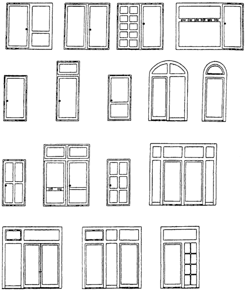 однопольные (левого и правого исполнения), двупольные (с штульповым или безимпостным притвором, в том числе с полотнами разной ширины), с вертикальным импостом и смежным глухим или светопрозрачным заполнением коробки;