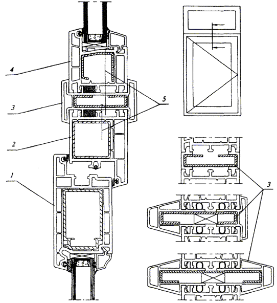 3.1.4 По конструктивному исполнению профильных систем дверные блоки подразделяют на изделия с двух-, трех- и более камерными профилями.