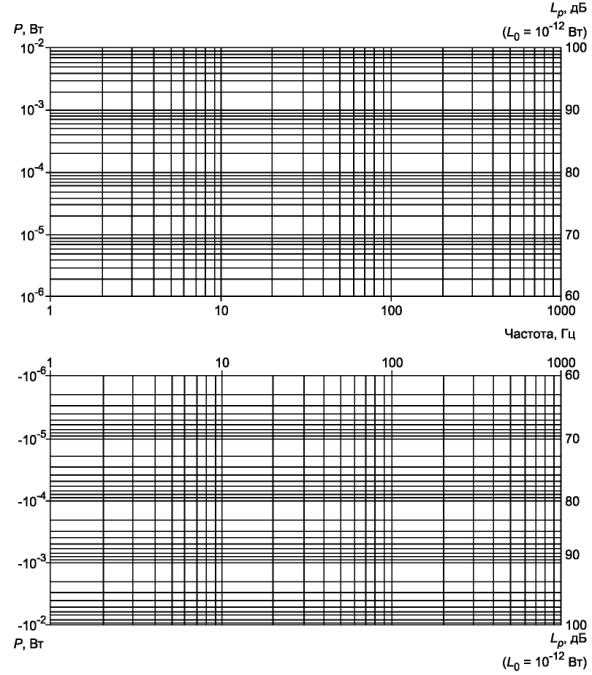 12.4 Полученные положительное и отрицательное значения колебательных мощностей представляют на бланке, приведенном на рисунке 6.