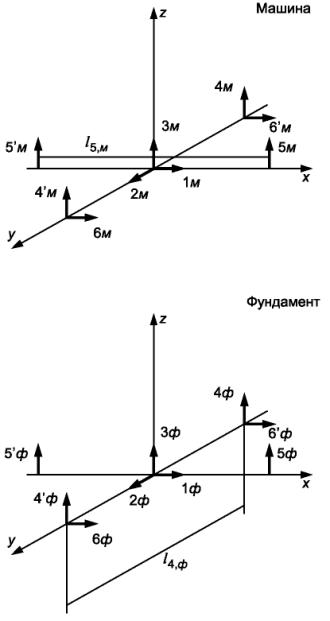 : Линейные (i = 1, 2, 3) и поворотные (i = 4, 5, 6) составляющие ускорения вибрации,