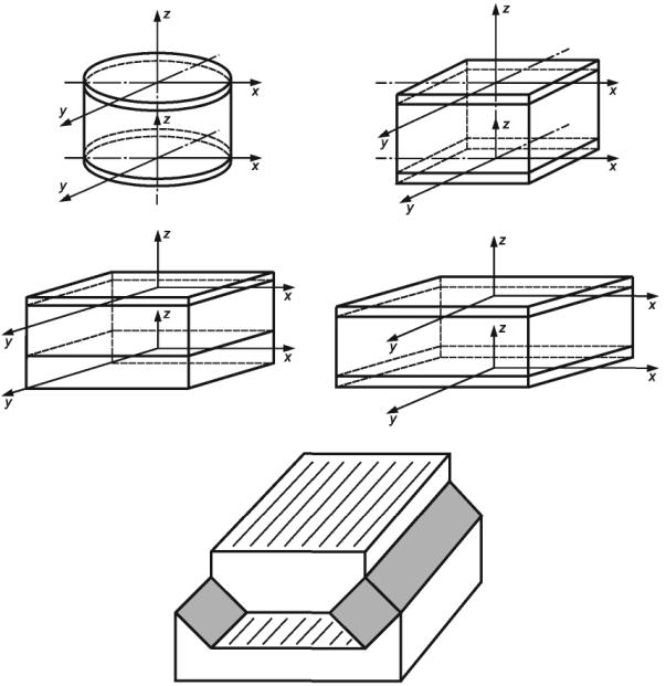 Рисунок Б.1 - Обобщенная схема осесимметричных виброизоляторов и виброизоляторов, симметричных относительно плоскостей zx и zy