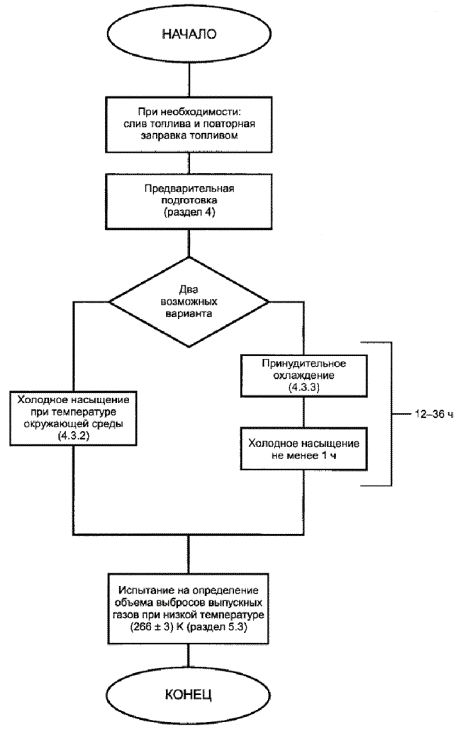 Р.3.2.3.3 После предварительного кондиционирования перед испытаниями транспортное средство должно быть выдержано в помещении, температура в котором остается относительно постоянной в пределах от 293 - 303 К (20 °С - 30 °С). Это кондиционирование должно длиться не менее 6 ч и продолжаться до тех пор, пока температура масла в двигателе и охлаждающей жидкости, при ее наличии, не будет отличаться от температуры помещения более чем на ± 2 К.