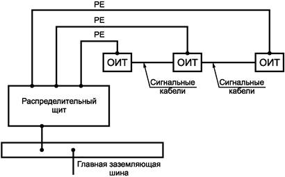 Рисунок В.1 - Радиально подсоединенные защитные проводники