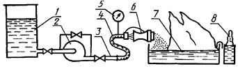 Для получения пены высокой и средней кратности используют установки, показанные на рисунках 8 и 9 соответственно.