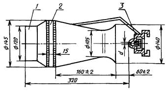 Устройство для определения показателя смачивающей способности пенообразователей (рисунок 7) состоит из полого цилиндра и стока с коническим дном, скрепленных между собой винтами, фильтра (саржа суровая, х/б), лабораторного штатива, чашки ЧБН-1-40 по ГОСТ 25336.