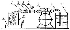 воздуха; 2 - редуктор; 3 - трубопровод; 4 - мерная трубка;