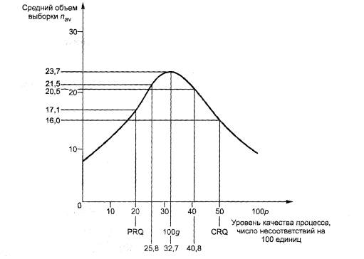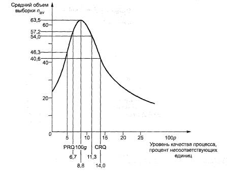 На рисунке С.4 приведеназависимость среднего объема выборки от уровня качества процесса.