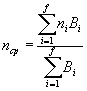 где ni - удельный выброс для котлапри работе на i-м видетоплива, г/МДж;