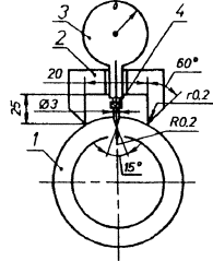 1 - труба; 2- специальная призма (L = 30); 3 - индикатор ИЧ-02 ГОСТ 577; 4 -специальный наконечник